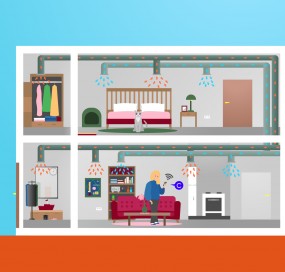 HUMIDSPOT – tai centrinė namų/biurų/ofisų drėkinimo įranga, drėkinanti orą adiabatiniu kanaliniu oro drėkintuvu per rekuperacinio vėdinimo ortakius. Automatizuota sistema užtikrins tolygų visų patalpų drėkinimą ir komfortą be jokios kasdieninės priežiūros. Drėgmės lygį paprasta stebėti ir valdyti išmaniosios programėlės pagalba.