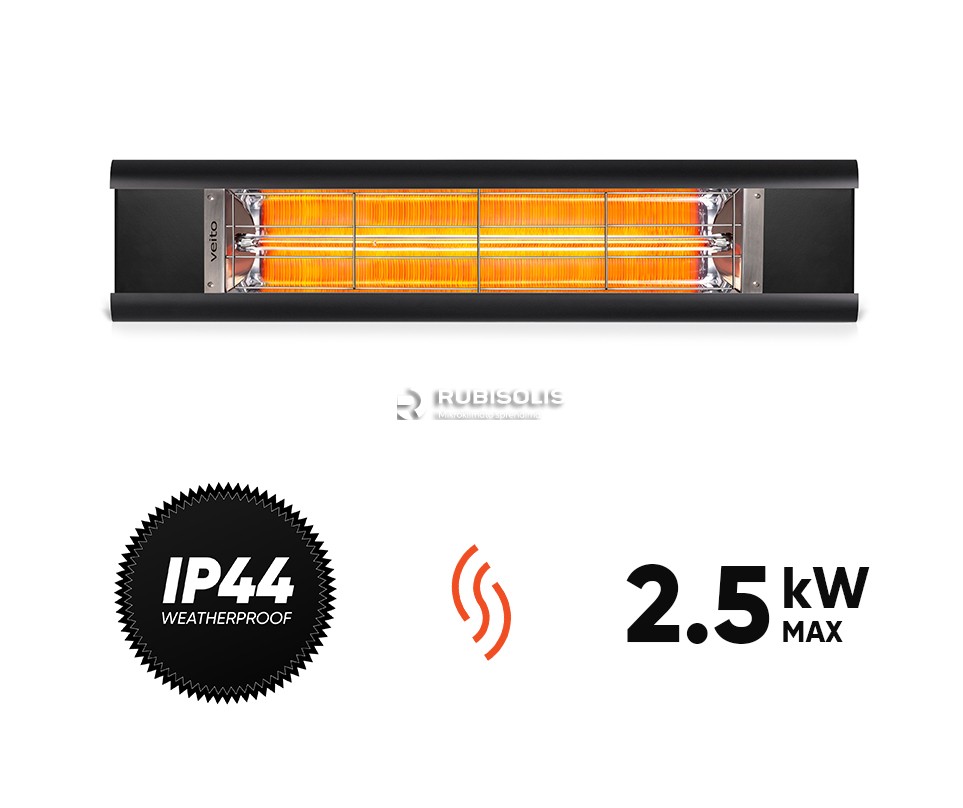 Veito infraraudonųjų spindulių šildytuvai su anglimi šildo greitai ir maloniai. Šie šildytuvai yra pagaminti iš aukštos kokybės perdirbamų medžiagų, tokių kaip aliuminis ir stiklas. Pastarojo metalo pagrindu pagamintas reflektorius išgauna maksimalią šildymo naudą, skleidžiant vidutinio ilgumo infraraudonųjų spindulių bangas. Tvirti ir vandeniui atsparūs (IP44) Veito Aero šildytuvai yra stilingo dizaino ir puikiai tinka naudoti tiek namuose, tiek komercinės paskirties patalpose, viduje ir lauke. Jie idealiai pritaikyti namams, žiemos sodui, terasai, vonios kambariui, restoranams, biurams, gamykloms, sporto salėms ir kt.