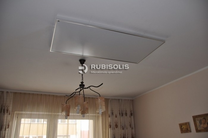 Šildymo plokštės Infrapower. Klientas gyvenantis daugiabučio namo pirmajame aukšte skundėsi, kad miegamojo grindys yra šaltos dėl apačioje esančio požeminio garažo. Problema išspręsta papildomam šildymui prie lubų pritvirtinus 60х90 cm 600 W šildymo plokštę.