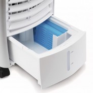 Pripildykite oro vėsintuvą vėsaus vandens. Norėdami išgauti itin šaltą oro srovę, į vandenį įdėkite atvėsintus ledo paketus (pridedama komplekte) arba ledo kubelius!