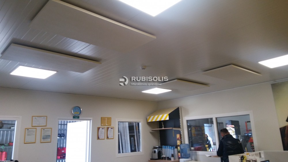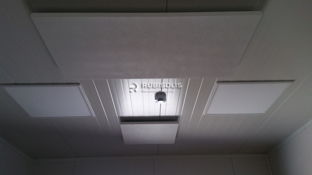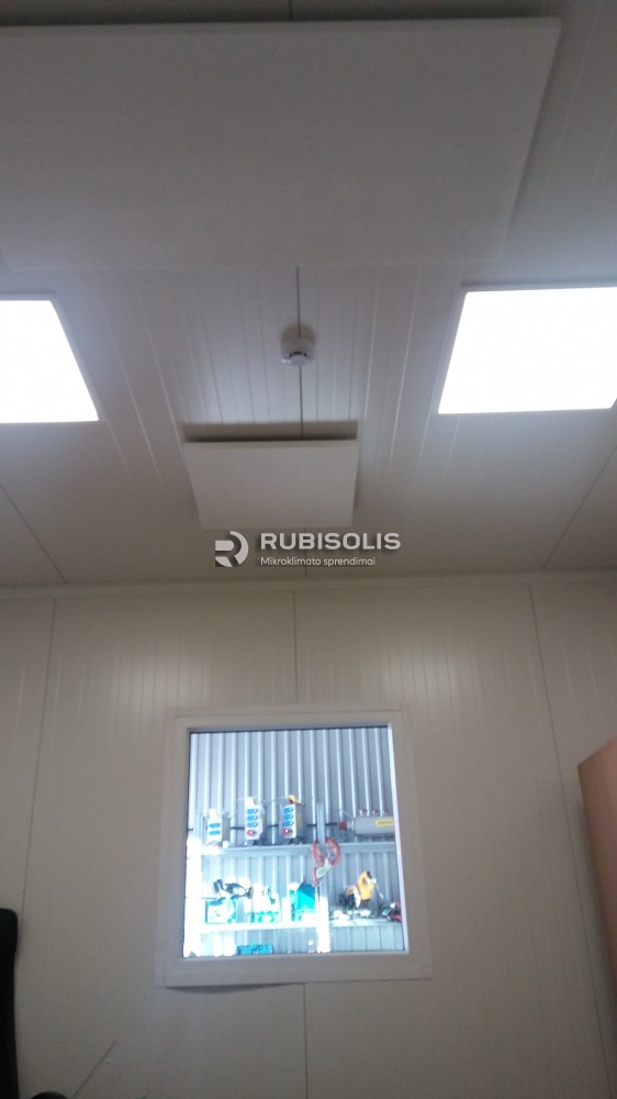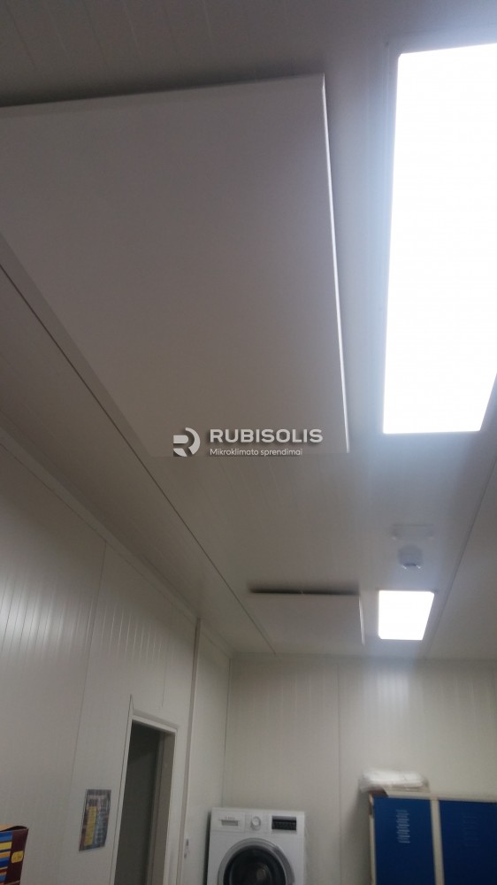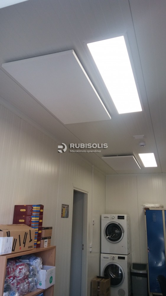 Biuro patalpų Kaune šildymas į lubas kabinamomis Ecosun 700U plokštėmis bei savaitiniais programuojamais termoreguliatoriais.