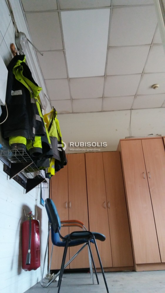 „Ramirent“ biuro patalpų Vilniuje (Titnago g.) šildymas į lubas kabinamomis Ecosun 700U plokštėmis, EnergoStrip šildytuvais bei savaitiniais programuojamais termoreguliatoriais.