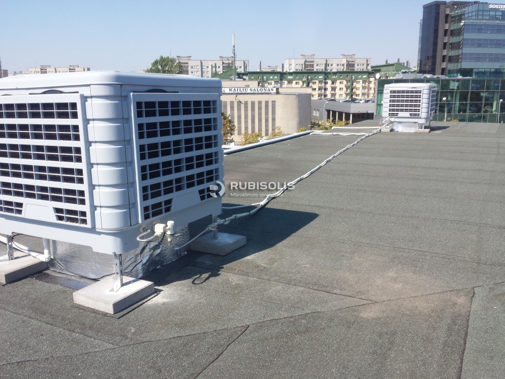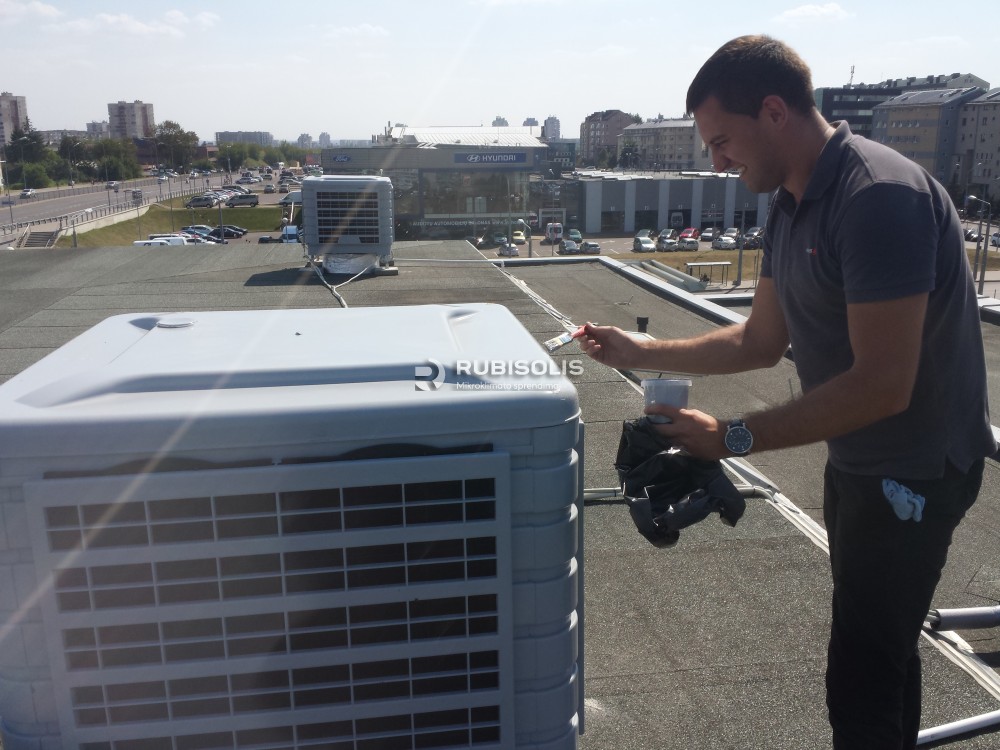 Autosalono vėsinimas pramoniniais vėsintuvais Aircon.