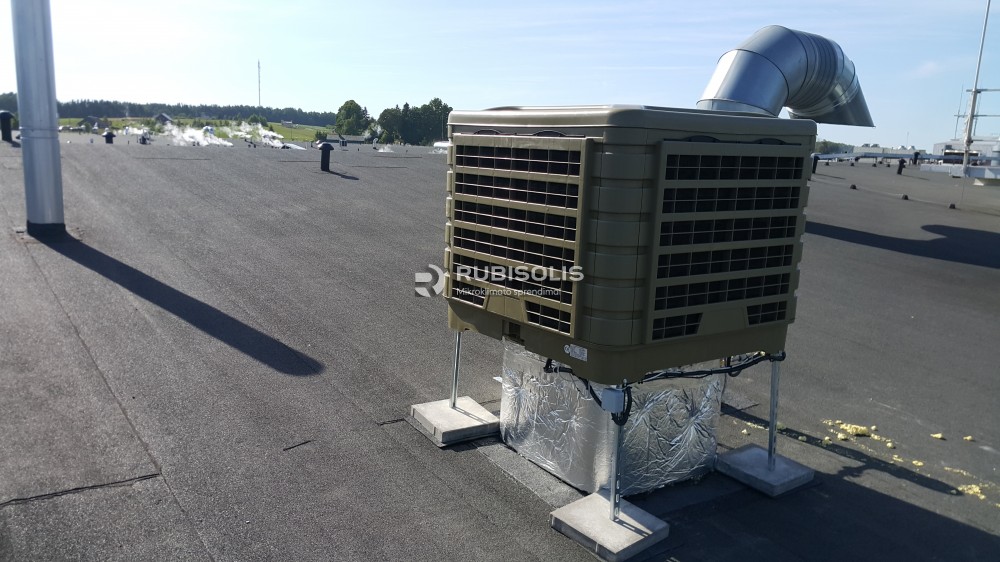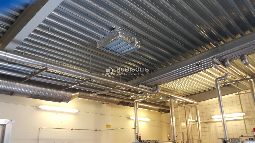 Šaldytų produktų gamybos cecho vėsinimas naudojant pramoninius vėsintuvus Aircon ir pramoninius ventiliatorius - oro ištraukėjus.