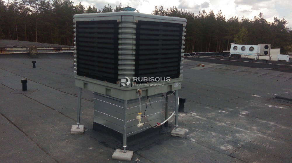 Pieno produktų gamybos cecho vėsinimas naudojant pramoninius vėsintuvus Aircon ir pramoninius ventiliatorius - oro ištraukėjus.