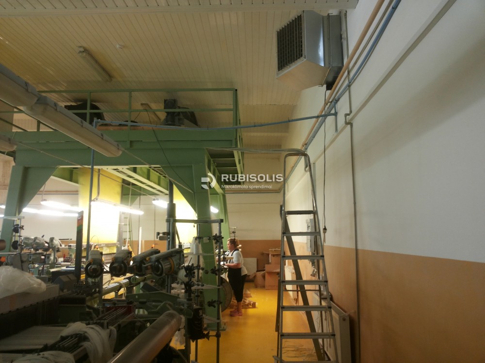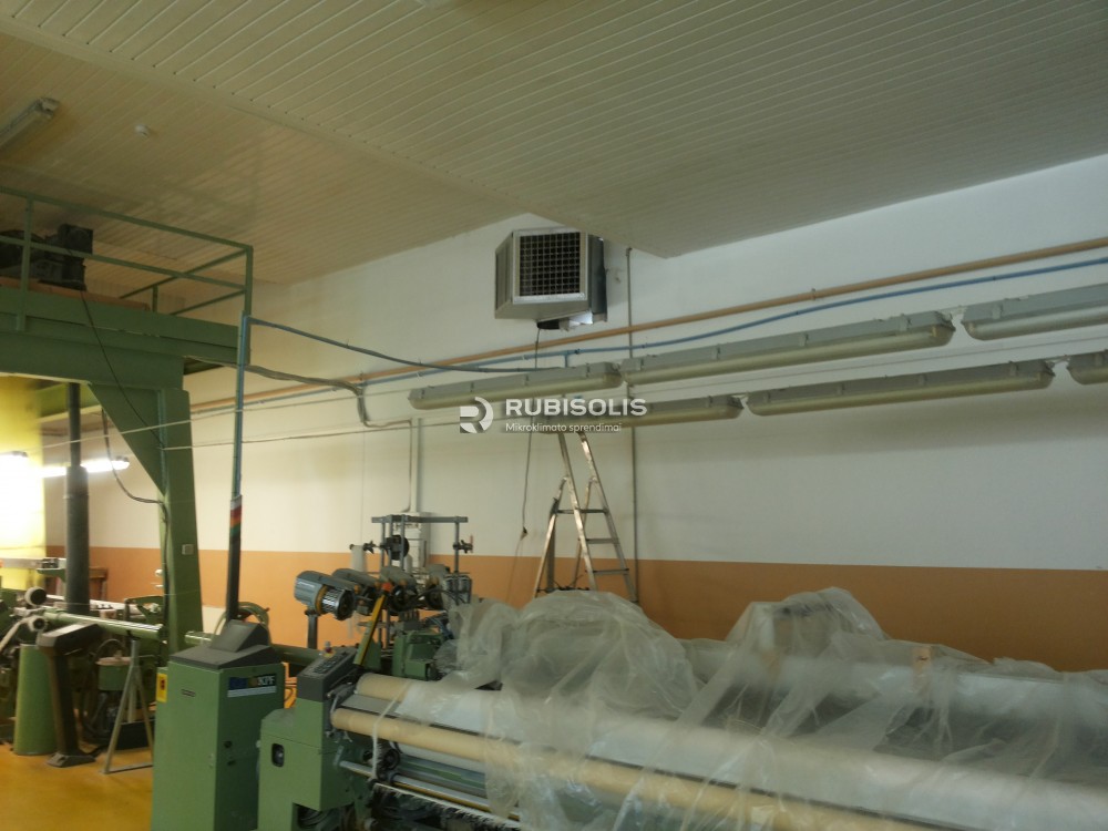 Siuvyklos vėsinimas pramoniniais vėsintuvais. Audimo ceche audžiamas linas. Klientas papildomai drėkina patalpą ir jo noras buvo kad drėgmė būtų dar didesnė.Oro pasikeitimas patalpoje apie 18 kartų per valandą. Stogas iš senų čerpių todėl nutartą vėsintuvą montuoti per sieną, šiaurinėje pusėje su dvikrypčiu difuzoriumi.