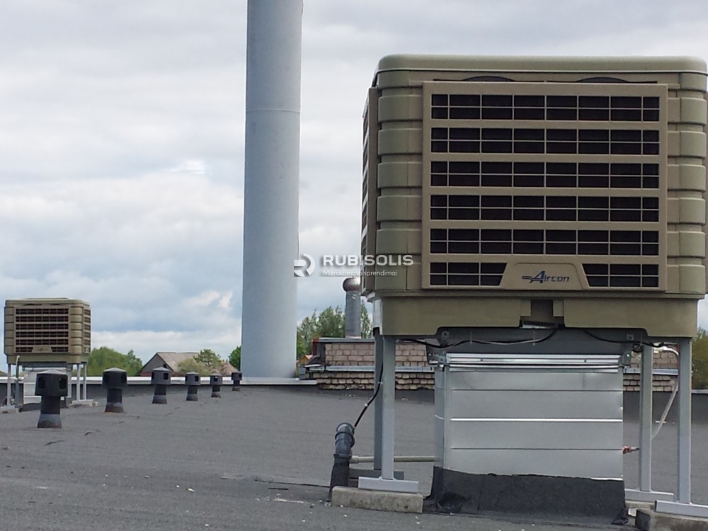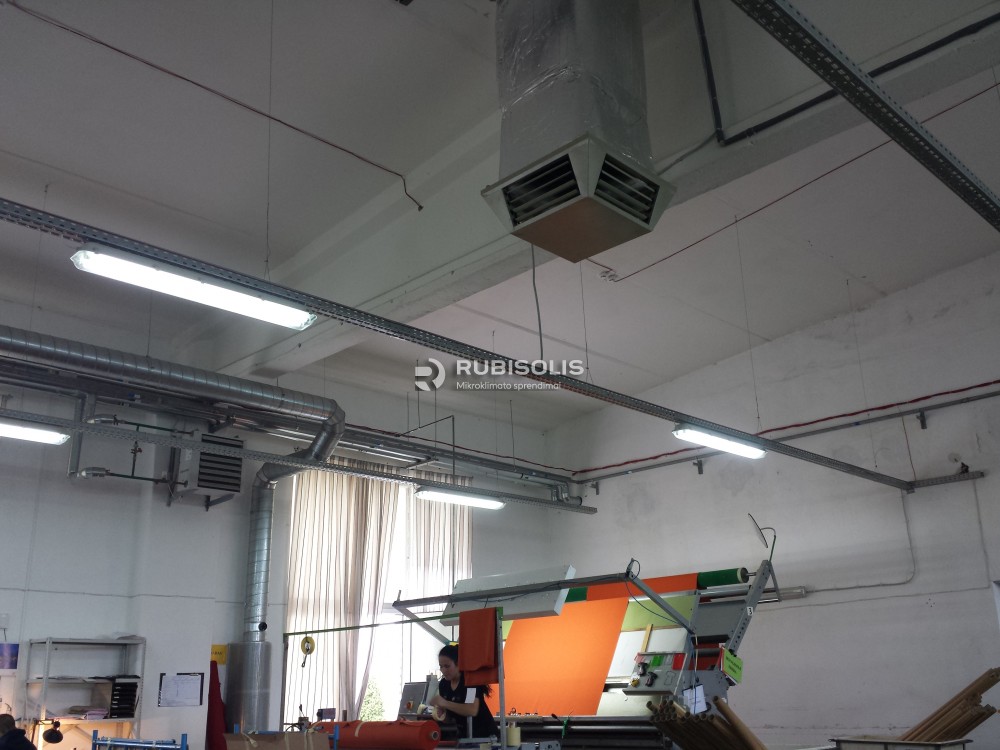 Siuvyklos vėsinimas pramoniniais vėsintuvais Aircon. Medžiagų pakavimo cecho plotas 648 m2, o aukštis - 4.8 m. Patalpoje sumontuoti du vėsintuvai po 18000 m3/h su papildomais stogo tvirtinimais (kadangi trapi betoninė plokštė). Oras plinta per 4 krypčių difuzorius. Oro pasikeitimas patalpoje - iki 14 kartų. Oro pašalinamas pro pravirus langus.