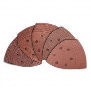 - 10 kibių trikampių šlifavimo lapų medienai: po keturis 60 / 80 / 100 / 120 / 140 grūdėtumo lapus