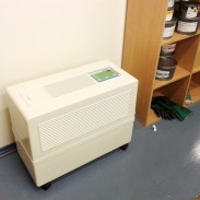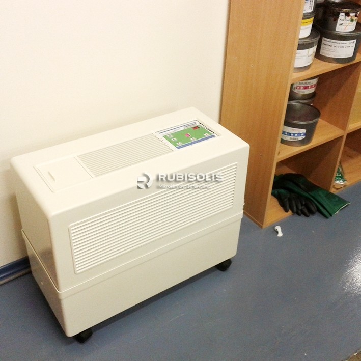 Dvi specializuotos spaustuvės patalpos po maždaug 80m2, 3,2m lubos. Pastatyti 2vnt. Trotec B500 radio su UV lempom ir automatiniu vandens padavimu. Klientas patenkintas, drėgmė greitai pakeliama ir palaikoma tik 60 proc. Visiškai automatizuotas sprendimas, vanduo paduodamas tiesiai iš vandentiekio, magnetinė sklendė uždaro/atidaro padavimą.