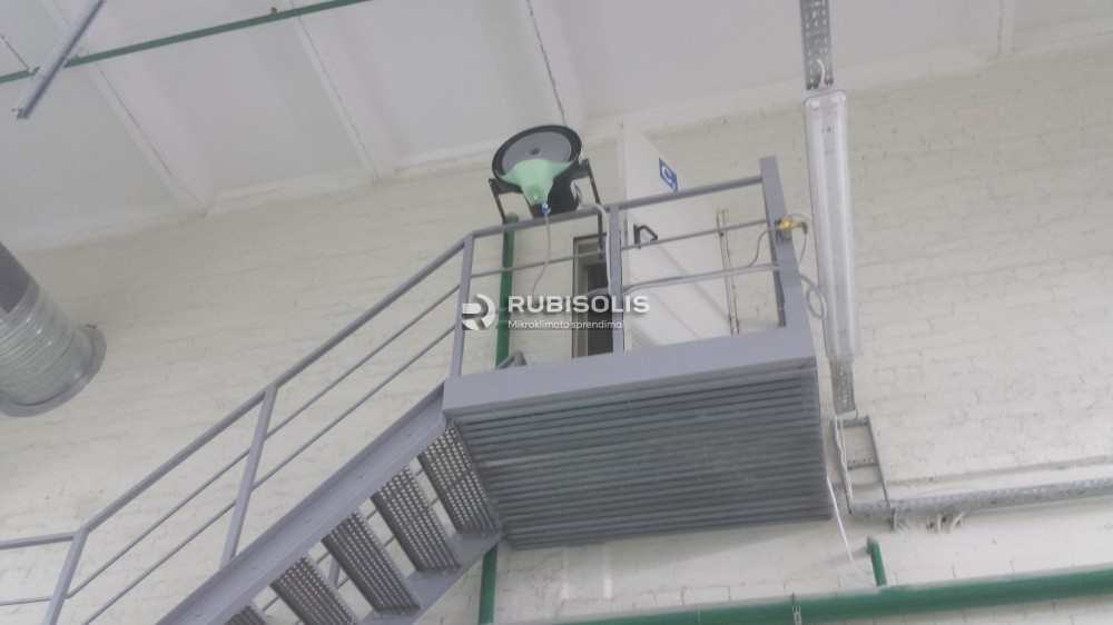 Oro drėkinimas baldų gamybos įmonės šlifavimo, glaistymo ir UV cechuose naudojant aukšto slėgio drėkinimo sistemą "Idrobase".