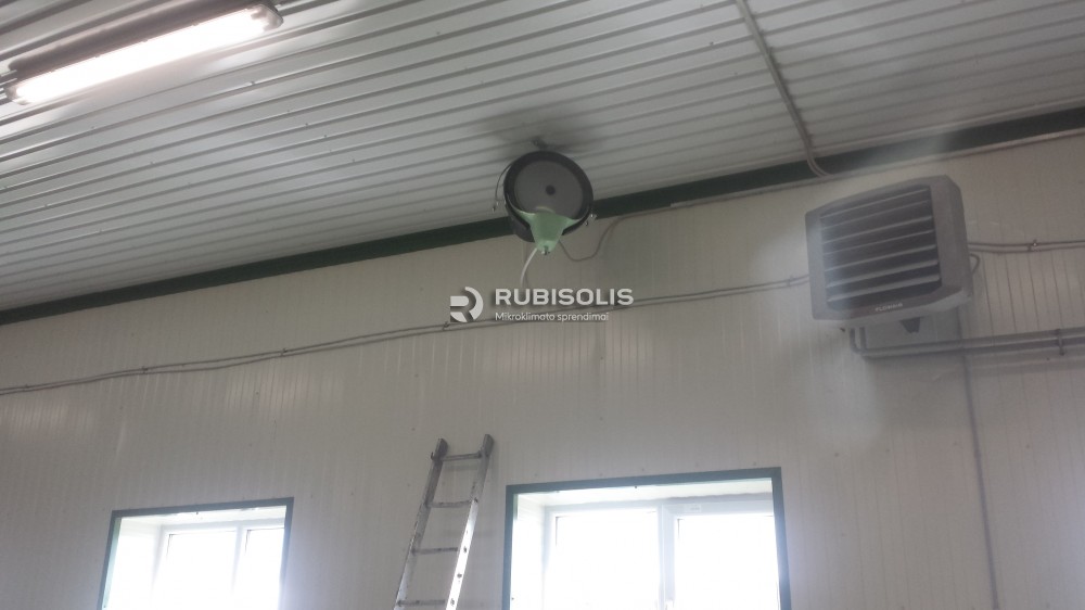 Oro drėkinimas gamybinėse patalpose naudojant aukšto slėgio drėkinimo sistemą "Idrobase".