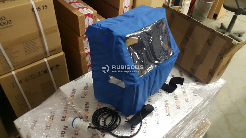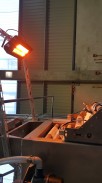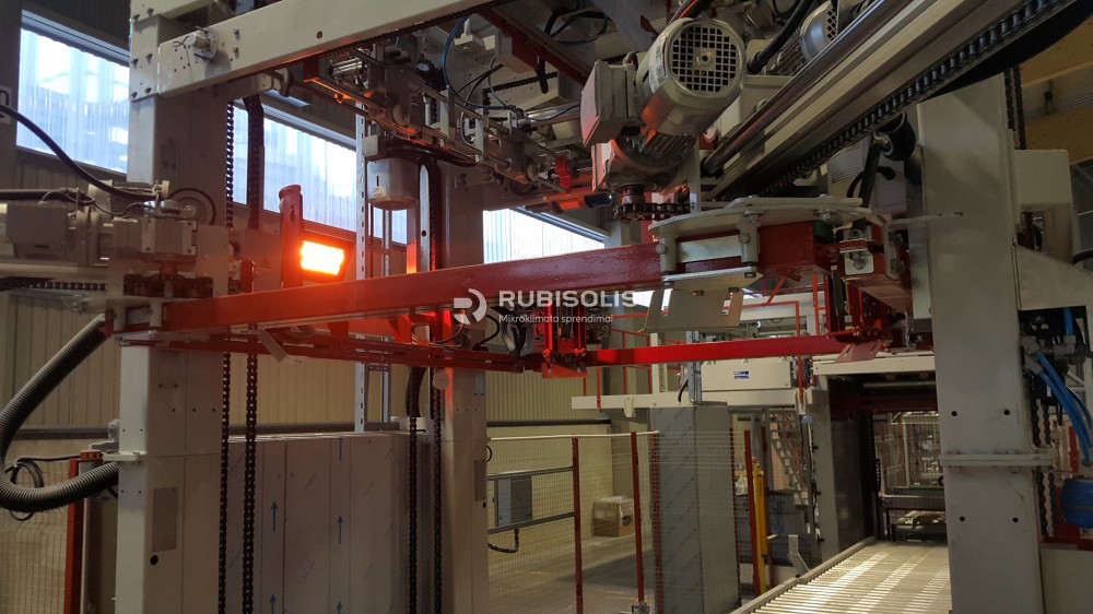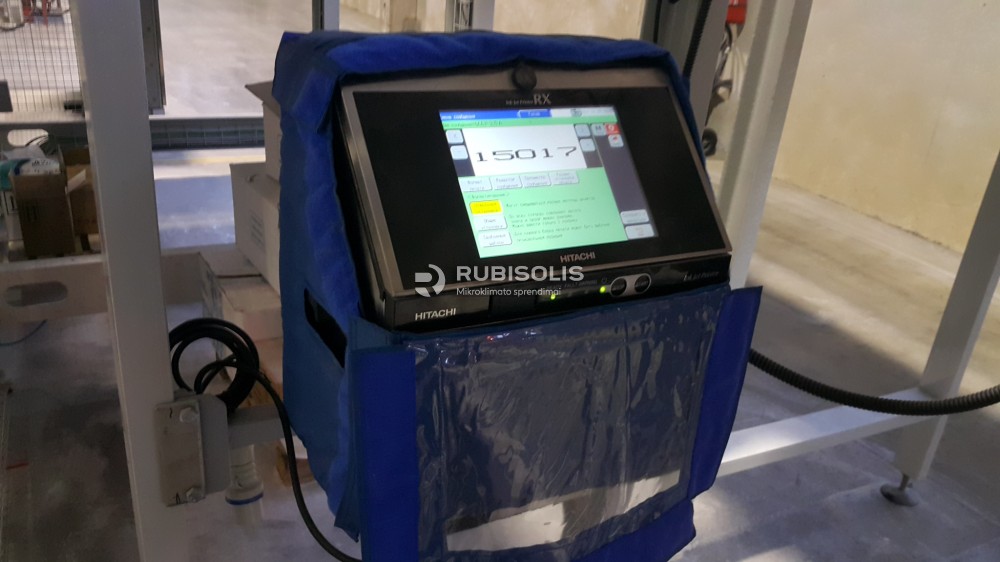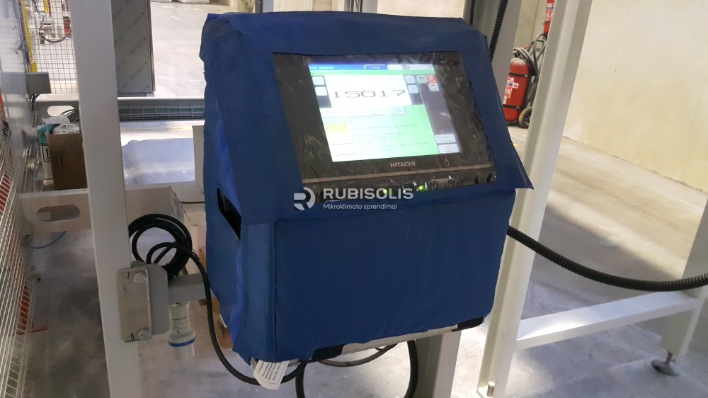 Pramoninio spausdintuvo Hitachi Ink Jet RX šildymas šildančiu aplotu Genius Carbon (pagal spec. užsakymą). Darbo zonos šildomos halogeniniais infraraudonųjų spindulių šildytuvais Varma V400.