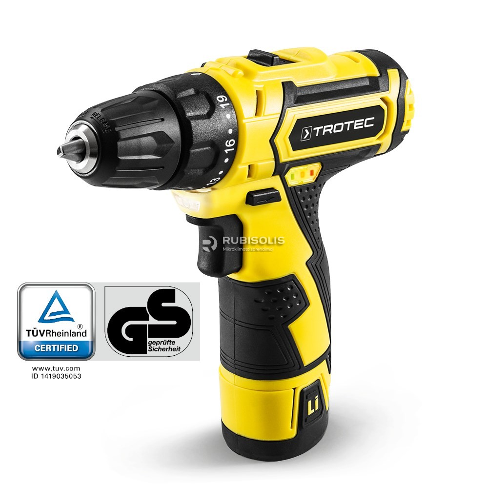 Vokiečių gamintojo TROTEC aukštos kokybės, ergonomiškas ir kompaktiškas akumuliatorinis suktuvas – gręžtuvas. Stebinantis kainos ir kokybės santykis. Šio prietaiso 19 Nm sukimo momentas suteikia galimybę esant net mažam greičiui atlikti galingą sukimą bei leidžia patogiai gręžti dideliu greičiu. „PSCS 11-12V“, turintis daugybę funkcijų, yra idealus ir itin rekomenduojamas įrankis beveik kiekvieno tipo sukimo ar gręžimo darbams namuose, dirbtuvėse, sode. Patvirtinta aukščiausios kokybės bei saugumo ženklais TUV ir GS.