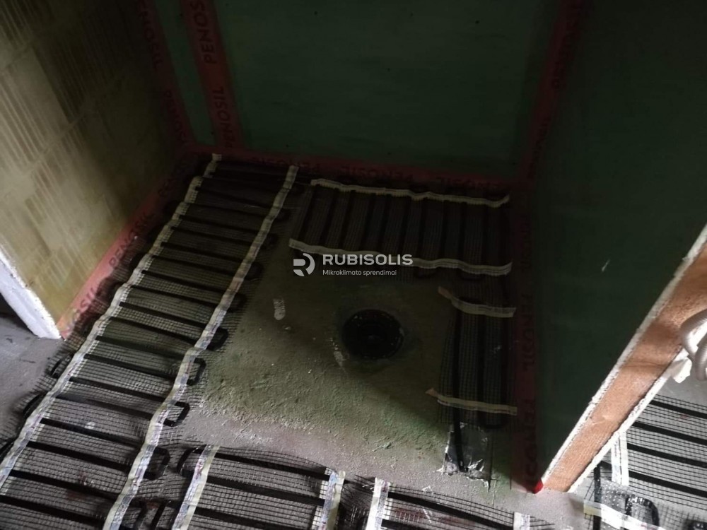 Pirties šildymas grindinio šildymo tinkleliais Warmset BLACK.