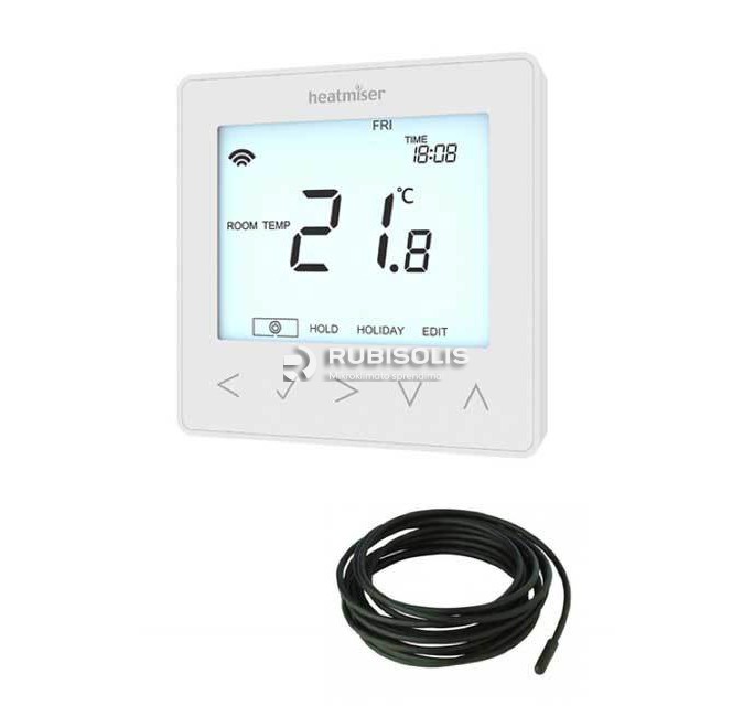 Elektrinio grindinio šildymo termostatas „Heatmiser neoStat-e V2“ suteikia Jums išmanesnį būdą valdyti elektrinio grindinio šildymo prietaisus. Sujungus šį termostatą su išmaniąja dėžute "Heatmiser neoHub" (parduodama atskirai), Jūs galėsite nuotoliniu būdu valdyti elektrinio grindinio šildymo sistemą. Termostatas „Heatmiser NeoStat-e V2“ yra tiekiamas kartu su 3 metrų ilgio nuotoliniu grindų jutikliu ir gali persijungti iki 16A ir susisieti su išmaniąja dėžute bei kitais „neoStats“ tipo prietaisais jūsų namuose. Tokiu būdu galima sukurti visiškai valdomą namų šildymo tinklo sistemą. „Heatmiser NeoStat-e V2“ gali būti sukonfigūruotas veikti kaip termostatas arba laikmatis! Taigi, jei norite valdyti rankšluosčių džiovintuvus ar apšvietimą, Neo siūlo tai ir dar daugiau!