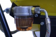 - Įmontuotas kuro bakas su lygio indikatoriumi;