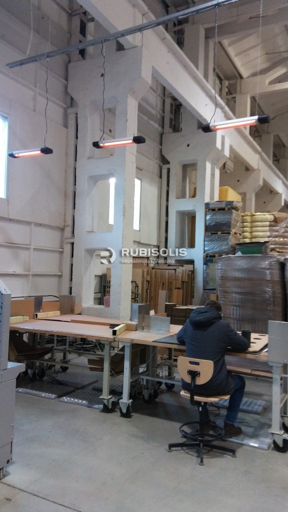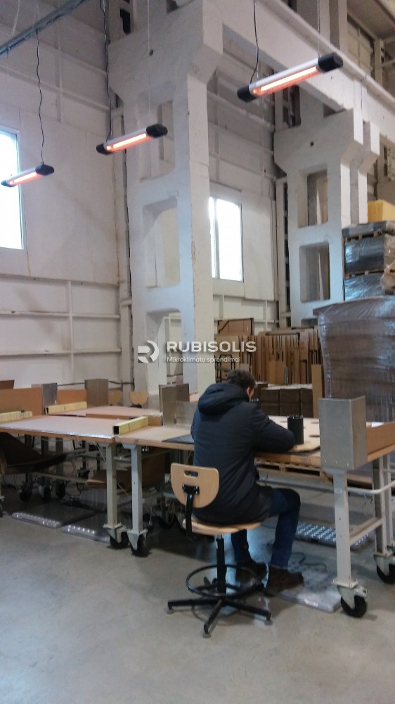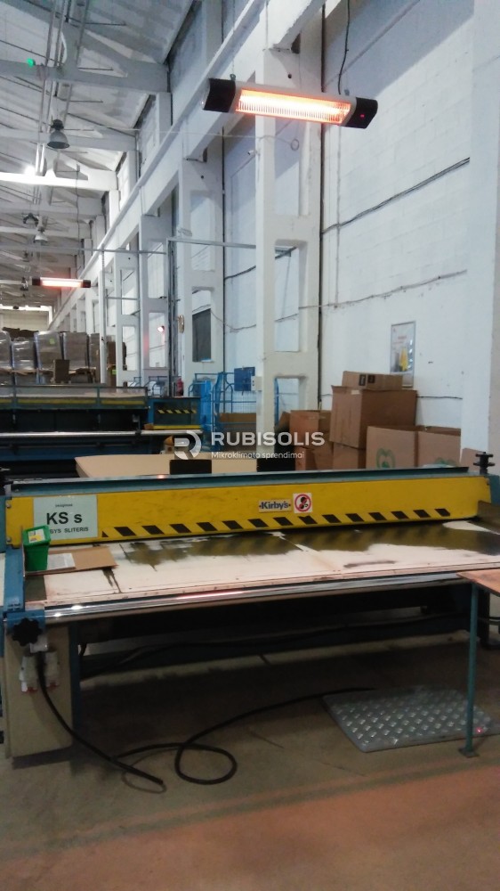 3000 m2 sandėlyje prie staklių dirba 20 žmonių. Prieš tai visas sandėlis buvo šildymas dujiniais kaloriferiais. Siekiant sumažinti sąnaudas ir padidinti efektyvumą, parinktas sprendimas šildyti tik atskiras darbo zonas. Tam panaudota 5 vnt. infraraudonųjų spindulių šildytuvų Veito CH2500 ir 20 vnt. šildančių grindinių platformų Vigo Ela.