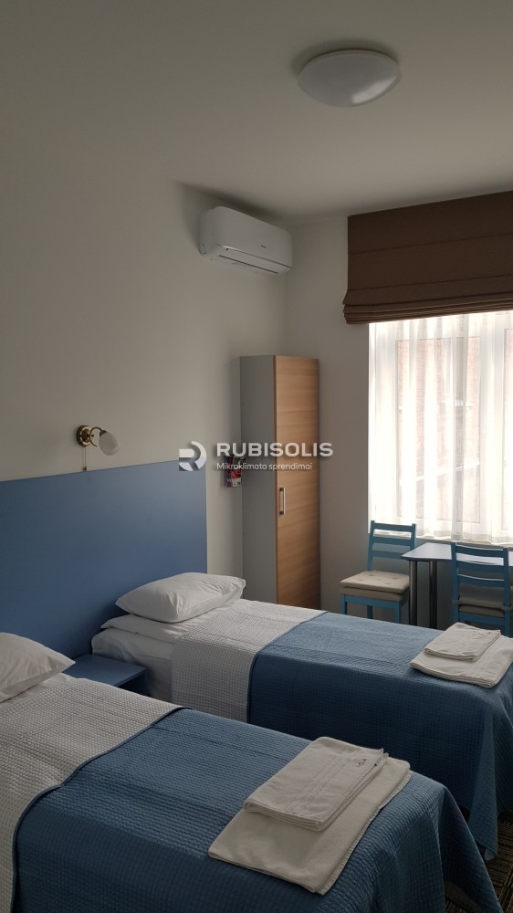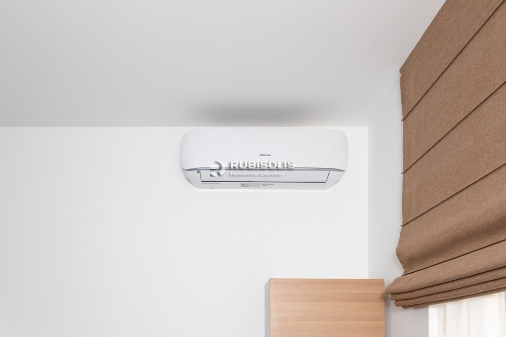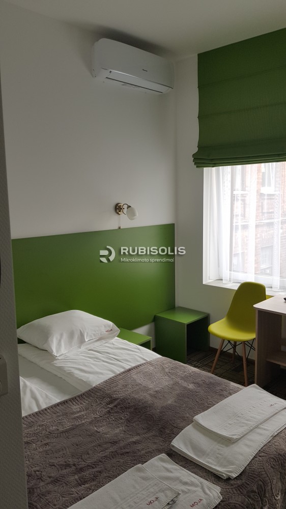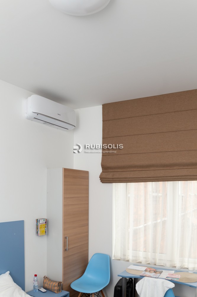 Oro kondicionavimas viešbutyje svečių kambariuose naudojant kelis Hisense oro kondicionierių/šilumos siurblių vidinius blokus ir išorinį bloką.