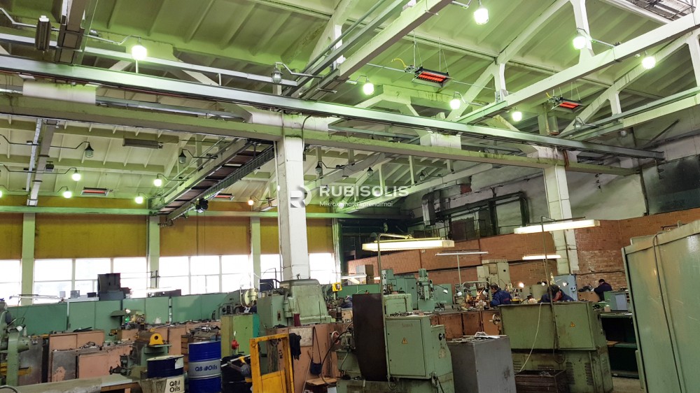 Metalo apdirbimo cecho šildymas šviesaus spinduliavimo dujiniais keramikiniais šildytuvais GH-36.