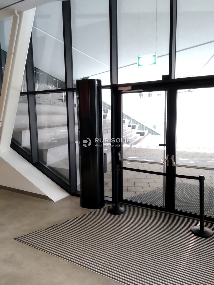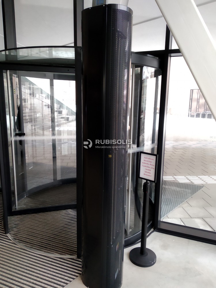 Oro užuolaidų Stavoklima Tubex naudojimas „Mo“ muziejuje prie dvigubų ir besisukančių durų. Pagal kliento pageidavimą užuolaidos yra matinės RAL 9011 spalvos ir su nuotolinio valdymo pulteliu. Užuolaida prie besisukančių durų nuolat veikia, todėl joje įmontuotas 12,5 kW elektrinis šildymo tenas.