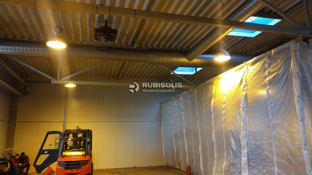 Oro sodintuvų-destratifikatorių Reventon naudojimas gamybos patalpose.
