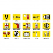 - Galingas, 16 V ličio jonų akumuliatorius be atminties efekto ir savaiminio išsikrovimo;