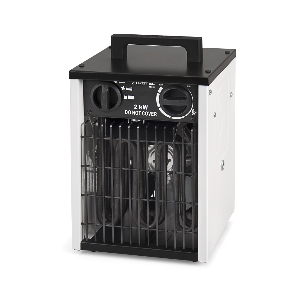 Trapecijos tipo nešimo rankenos leidžia 400 V modelius uždėti vieną ant kito keliomis eilėmis, tačiau jie vis tiek išlieka stabilūs. Kaip standartinė įranga montuojamas oro slopintuvas optimizuoja šilumos išleidimą ir garantuoja maksimalų našumą. 100% Trotec, t.y. TDS serijos elektrinius šildytuvus galima įsigyti tik iš Trotec!