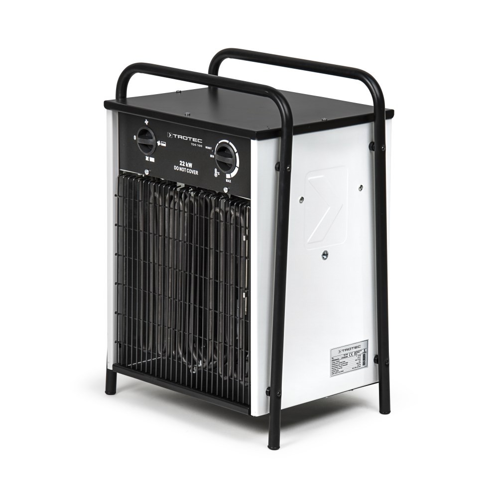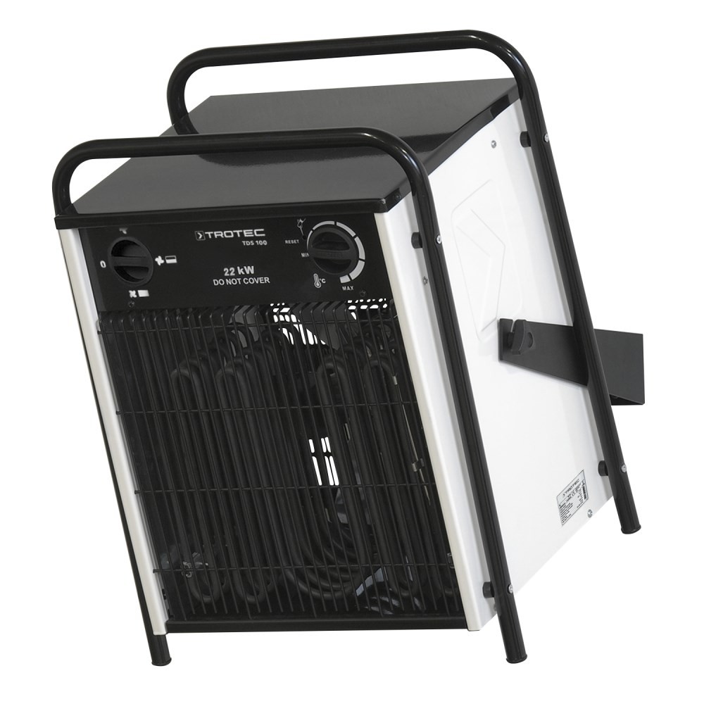 Trapecijos tipo nešimo rankenos leidžia 400 V modelius uždėti vieną ant kito keliomis eilėmis, tačiau jie vis tiek išlieka stabilūs. Kaip standartinė įranga montuojamas oro slopintuvas optimizuoja šilumos išleidimą ir garantuoja maksimalų našumą. 100% Trotec, t.y. TDS serijos elektrinius šildytuvus galima įsigyti tik iš Trotec!