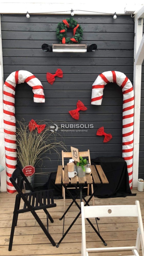 Klaipėdoje ant jūros kranto esančios kavinės „ATEIK ATEIK“ (Vėtros g. 8) lauko terasos šildymas anglies pluošto infraraudonųjų spindulių šildytuvais Veito Blade S.