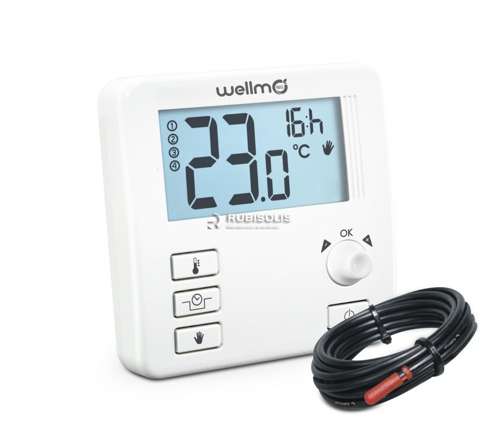 Virštinkinis termoreguliatorius su grindiniu jutikliu. Naudojamas valdyti šildomas grindis. Paprastai montuojamas, lengvai valdomas, taupo el. energiją. Maitinamas 2 vnt. baterijomis tipo AAA. Įmontuotas jungiklis, leidžiantis lengvai ir bet kuriuo metu išjungti termoreguliatorių. Turi LCD ekraną, kuriame rodoma esama patalpos temperatūra bei nustatyta plaikoma temperatūra. Išorinis (grindinis) temperatūros jutiklis su 2,5 m ilgio laidu.