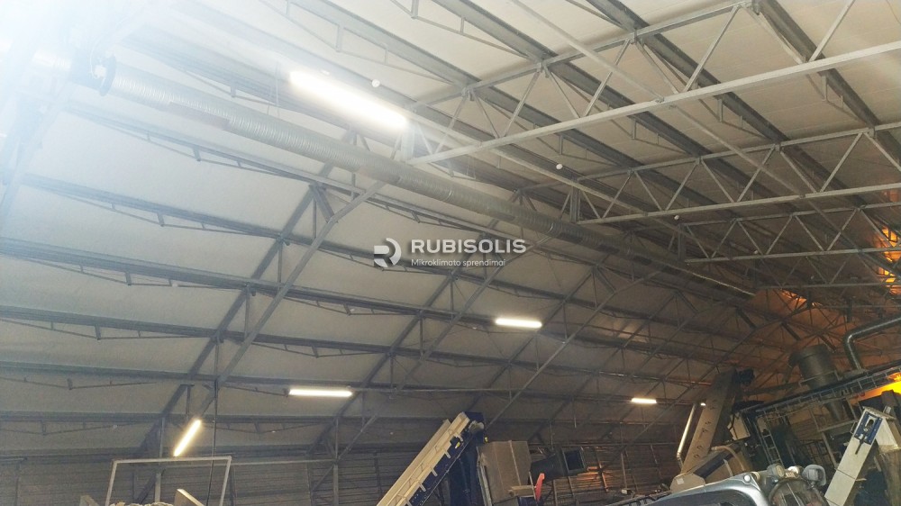 Plastiko gamyklos cechų vėsinimas/vėdinimas/oro ištraukimas pramoniniais vėsintuvais, ortakiais, oro ištraukėjais.