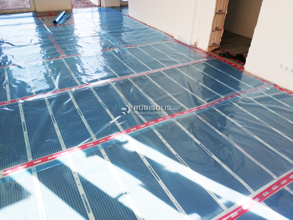 Kotedžo grindinis šildymas naudojant anglies pluošto grindinio šildymo plėveles Varme Plus.