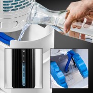 - Didesniam oro vėsinimo efektyvumui pasiekti galima naudoti du šaldymo elementus, įeinančius į komplektaciją, arba naudojant ledo kubelius;