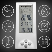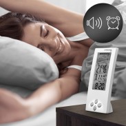 Orų stotelė „4 in 1“: rodomi ne tik patalpose esamo klimato rodikliai, bet ir orų prognozė, laikas, data bei integruota žadintuvo funkcija.