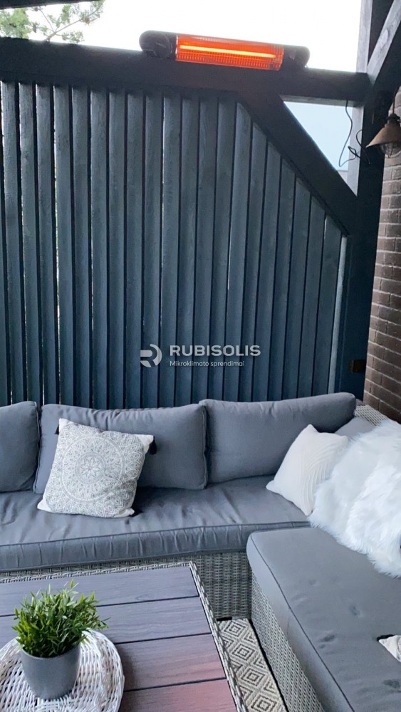 Namo lauko terasos šildymas anglies pluošto infraraudonųjų spindulių šildytuvu Veito Blade.