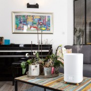Šis modernaus dizaino prietaisas dėl baltos spalvos korpuso, medienos spalvos kojelių ir šviečiančio liečiamo valdymo skydelio puikiai įsilies į jūsų namų interjerą. Išjungus liečiamo skydelio apšvietimą, drėkintuvą galėsite palikti net ir miegamajame.