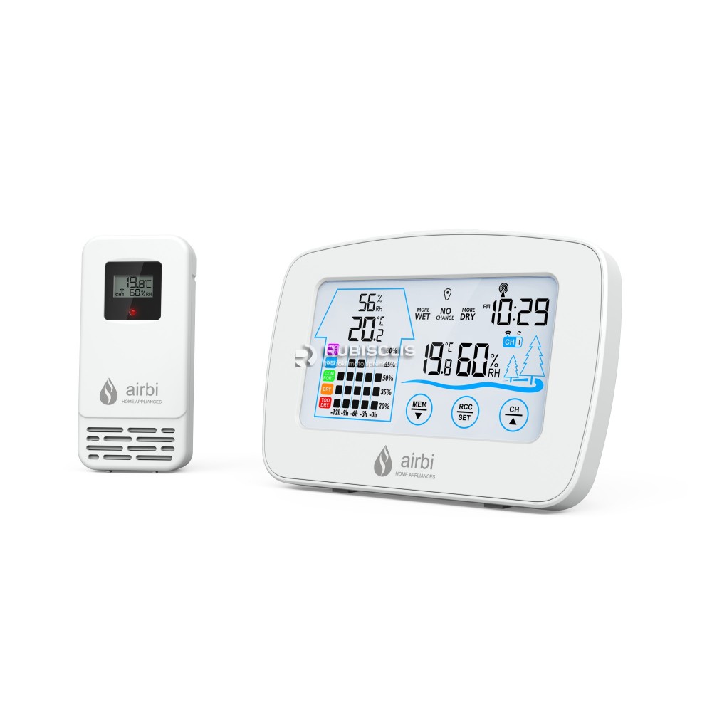 Meteorologinė stotelė Airbi CONTROL skirta matuoti vidaus temperatūrą nuo -10 °C iki +50 °C ir drėgmę nuo 20% iki 95%. Taip pat pridedamas temperatūros bei drėgmės jutiklis, tinkantis naudoti tiek patalpoje, tiek lauke, perduodantis informacija iki 100 m atstumu (atviroje erdvėje). Orų stotelę reikia apsaugoti nuo tiesioginio lietaus ir saulės. Šis naujoviškas gaminys puikiai tinka naudoti namuose arba biure.