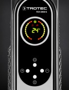 Su nuotolinio valdymo pultu galima patogiai ir lengvai pasirinkti viena iš dviejų šildymo lygių: 1200 W arba 2000 W. Esama kambario temperatūra visada rodoma LCD ekrane. Kad galėtumėte optimaliai pritaikyti šildytuvo Trotec TCH 2050 E šildymo galią pagal savo kambario temperatūrą, jis turi išmanųjį temperatūros valdymą termostatu – tiesiog įveskite pageidaujamą kambario temperatūrą nuo 15 ° C iki 35 ° C. Šildytuvas šildo patalpą iki tol, kol pasiekiama iš anksto nustatyta temperatūra, tuomet automatiškai išsijungia. Kai tik reikia pašildyti patalpą, šildytuvas vėl automatiškai įsijungia, kad kambario temperatūra būtų pastovi. Šis procesas yra ypač efektyvus ir taupantis energiją, nes šildytuvas šildo tik tiek, kiek reikia, kad būtų užtikrinta maloni, patogi šiluma.