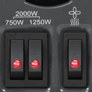 - Trys šildymo lygiai: 750 W, 1250 W arba 2000 W;