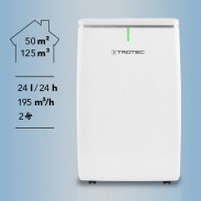 Trotec TTK 72 E oro sausintuve integruotos visos komforto klasės funkcijos: laikmatis, dviejų lygių ventiliatorius, apsauga nuo išsiliejimo bei automatinio išjungimo funkcija ir lengvai išimamas ir plaunamas oro filtras. Nuolatiniam sausinimui integruota drenažo jungtis, leidžianti prietaisui neprižiūrimai ir nepertraukiamai veikti bei turėti mažesnes energijos sąnaudas.