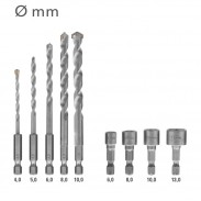 Universalus rinkinys, skirtas metalo, medžio, betono, mūro ir plytelių gręžimo bei sukimo darbams atlikti.