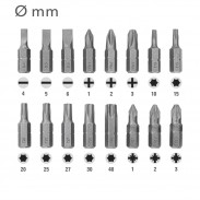 Dydžiai: SL 4 / 5 / 6 | PH 1 / 2 / 3 | T 10/15/20/25/27/30/40 | PZ 1 / 2 / 3 mm
