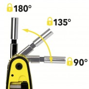 Kadangi antgalių laikiklis gali būti užfiksuotas trimis skirtingomis padėtimis, daugiafunkcį įrankį galima sulenkti bet kokiu kampu, kuris jums labiausiai tinkamas įvairiose darbo situacijose. O dėka magnetinio antgalių adapterio su 1/4 colio šešiakampe įduba galėsite prisitaikyti jau turimus antgalius su kitais reikiamais dydžiais.