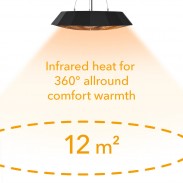 Lietui atsparus lubų šildytuvas IR 2010 SC pagamintas iš milteliniu būdu dengto aliuminio, bei atitinka IP45 apsaugos klasę. Nuo 46cm pločio šildytuvo šiluma sklinda 360 ° žemyn – tikslingai šildomas iki 12m2 plotas. Priešingai nuo kitų lauko šildytuvų, IR 2010 SC pirmiausia šildo odą ir kitus paviršius, o ne aplinkos orą. Dėl šio veikimo principo jis šildo pastebimai intensyviau ir efektyviau nei kitos šildymo technologijos nesukeldamas nemalonių kvapų ar triukšmo.