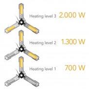 - 3 šildymo lygiai, iki 2000 vatų šildymo galia;