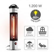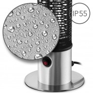 Trotec IRS 1200 E – modernus anglies pluošto infraraudonųjų spindulių pastatomas šildytuvas su šviesą mažinančia mažo akinimo technologija. Kompaktiškas ir mobilus šildytuvas skleidžia šilumą 360° aplink savo ašį sėdynės aukštyje, todėl puikiai tinka statyti po stalu ar šalia sėdimų vietų. Aukštos kokybės aliuminio korpusas yra apsaugotas nuo dulkių nuosėdų, purslų ir vandens čiurkšlių pagal apsaugos klasę IP55, todėl IRS 1200 E tinka ne tik namų terasoje ar balkone, bet ir nedengtose lauko zonose. Priešingai nuo kitų lauko šildytuvų, IR 1200 pirmiausia šildo odą ir kitus paviršius, o ne aplinkos orą. Dėl šio veikimo principo jis šildo pastebimai intensyviau ir efektyviau nei kitos šildymo technologijos nesukeldamas nemalonių kvapų ar triukšmo.