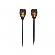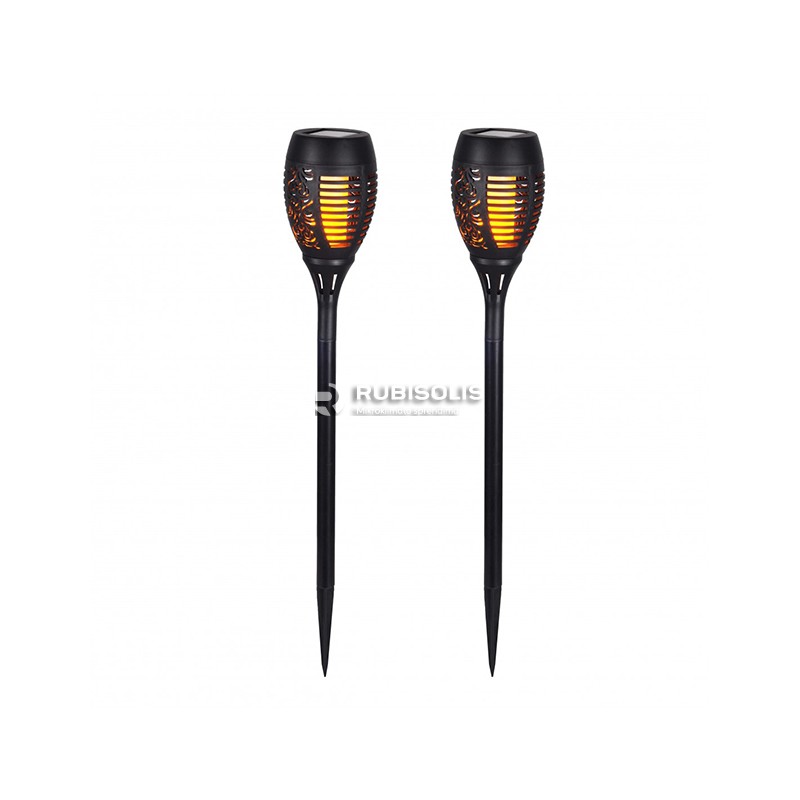 Šie saulės energija įkraunami LED lauko šviestuvai yra saugi alternatyva tikriems fakelams ir žvakėms. Šviestuvo liepsnos efektas suteikis puikią ir šiltą atmosferą jūsų sode, kieme, vakarėlyje ar stovyklaujant. Šviestuvo akumuliatorius maitinamas ekologiškai, naudojant atsinaujinantį energijos šaltinį – saulės energiją: dienos metu akumuliatorius įsikrauna nuo saulės šviesios energijos, o sutemus šviestuvas įsijungia automatiškai.