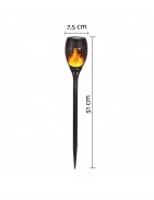 Šis saulės energija įkraunamas LED lauko šviestuvas yra saugi alternatyva tikriems fakelams ir žvakėms. Šviestuvo liepsnos efektas suteikis puikią ir šiltą atmosferą jūsų sode, kieme, vakarėlyje ar stovyklaujant. Šviestuvo akumuliatorius maitinamas ekologiškai, naudojant atsinaujinantį energijos šaltinį – saulės energiją: dienos metu akumuliatorius įsikrauna nuo saulės šviesios energijos, o sutemus šviestuvas įsijungia automatiškai.