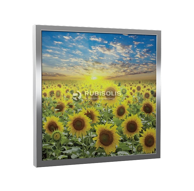 Šildymo plokštes ECOSUN G gali būti ir stiklinio paveikslo pavidalu, kas be jokios abejonės paverčia šildymo elementą unikaliu, labai pastebimu aksesuaru interjere. Aukštos kokybės skaitmeninė spauda yra uždedama tiesiai ant stiklo iš vidinės pusės – taip pasirinktas motyvas yra apsaugomas nuo galimo mechaninio pažeidimo. Galima rinktis įvairius gamintojo siūlomus motyvus bei sidabrinį anoduoto aliuminio arba juodos spalvos matinį rėmelį. Neišsirinkę iš gamintojo siūlomų motyvų, visada galite pateikti savąjį. Taip Jūsų šeimos nuotrauka ar nuostabiausia atostogų akimirka šildys Jus visą žiemą.