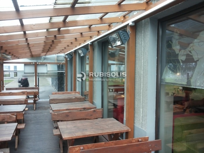 Čili pica Panevėžyje savo lauko terasą šildė IKO šildytuvais, kuriais nusivylė, dėl to pasirinko italų kompanijos Varma šildytuvus WR65/15FM (5 vnt.). Šildytuvai šildo 50 m2 terasos plotą, kuriam tenka 50 W/m2. Terasos sienos pusiau stiklinės, pusiau polietileninės. Kadangi praėjusiais metais šildymo sprendimas buvo įrengtas gan vėlai, dėl to rudenį klientas juo nespėjo daug pasinaudoti, tačiau šiemet jau naudoja daugiau ir yra patenkintas.